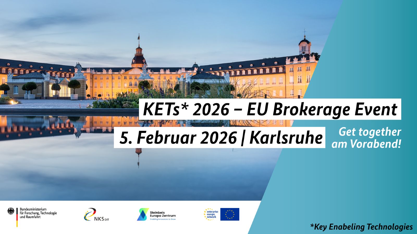 Am 5. Februar 2026 veranstaltet die NKS DIT das „KETs 2026 EU Brokerage Event“ (Key Enabeling Technologies) als Vor-Ort-Veranstaltung in Karlsruhe. Am späten Nachmittag des Vorabends (4. Februar) ist bereits die Registrierung möglich und es wird ein Get-Together-Empfang für alle Teilnehmenden angeboten.